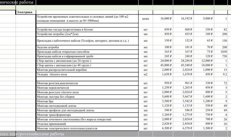 - Стоимость кабелей, проводов, щитового оборудования, коробок, реле, кабеленесущих систем, соединительных клемм, подрозетников, розеток и выключателей;