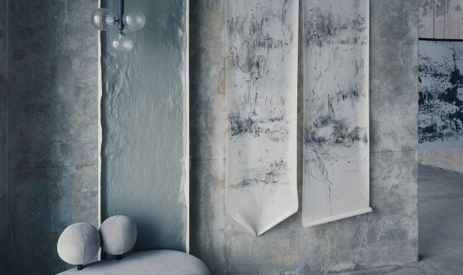 Экспозиция воплощает собой сон, воссоздающий процесс конструирования интерьера. В нем искусство и дизайн трансформируют пространство, в котором изначально была лишь пустота.