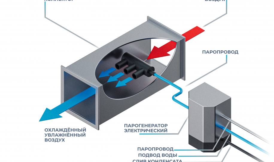 Такие увлажнители работают за счёт подачи водяного пара в воздуховод, что позволяет поддерживать нужную влажность. Они часто используются в местах с высокими требованиями к уровню влажности.