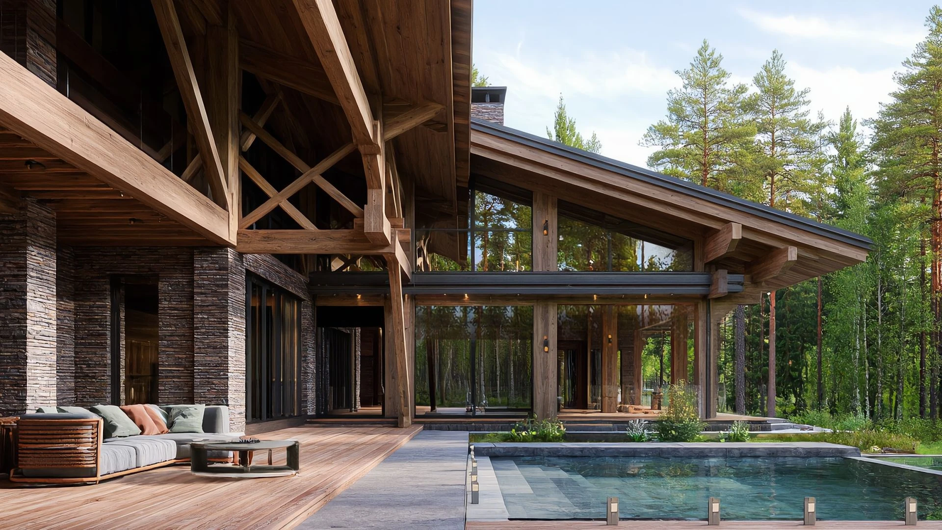 Концепция нашего шале строится на триединой основе: Прочность, Естественность, Тепло. Это глубокое уважение к канонам, рожденным в суровом горном климате. Каждый элемент здесь функционален, материален и несет в себе историю своего происхождения.
