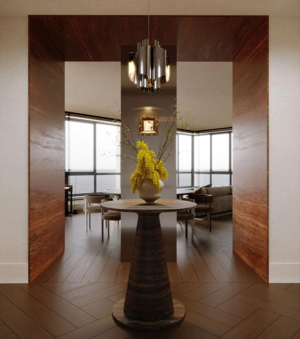 Стильный интерьер в соответствии с принципами древнеиндийской философии Васту. Основная идея проекта - со